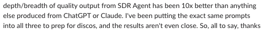 The GTM agent started as an SDR agent and then became used by the broader GTM team.