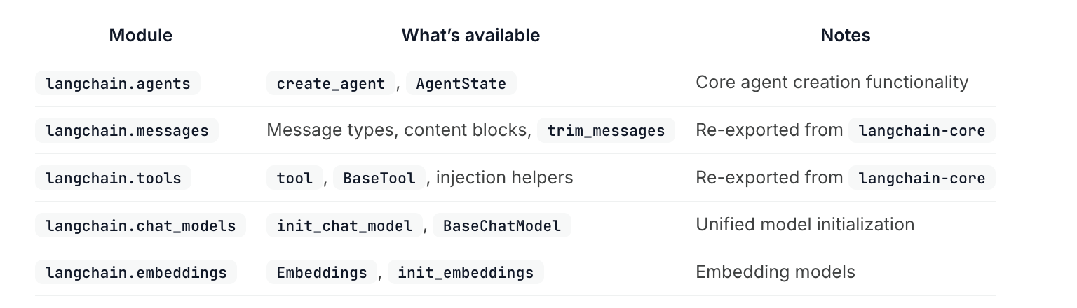 for backwards compatibility. As the framework has matured, we've learned what patterns matter most. This streamlined package cuts through years of accumulated features to make LangChain simple and powerful.