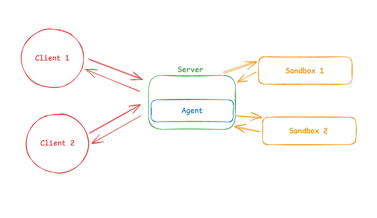 Then run it inside the sandbox. A complete implementation requires additional infrastructure to handle communication between your application and the agent inside the sandbox (WebSocket or HTTP server, session management, error handling). This is beyond the scope of this post, but we will have some follow up posts diving into this in more detail.