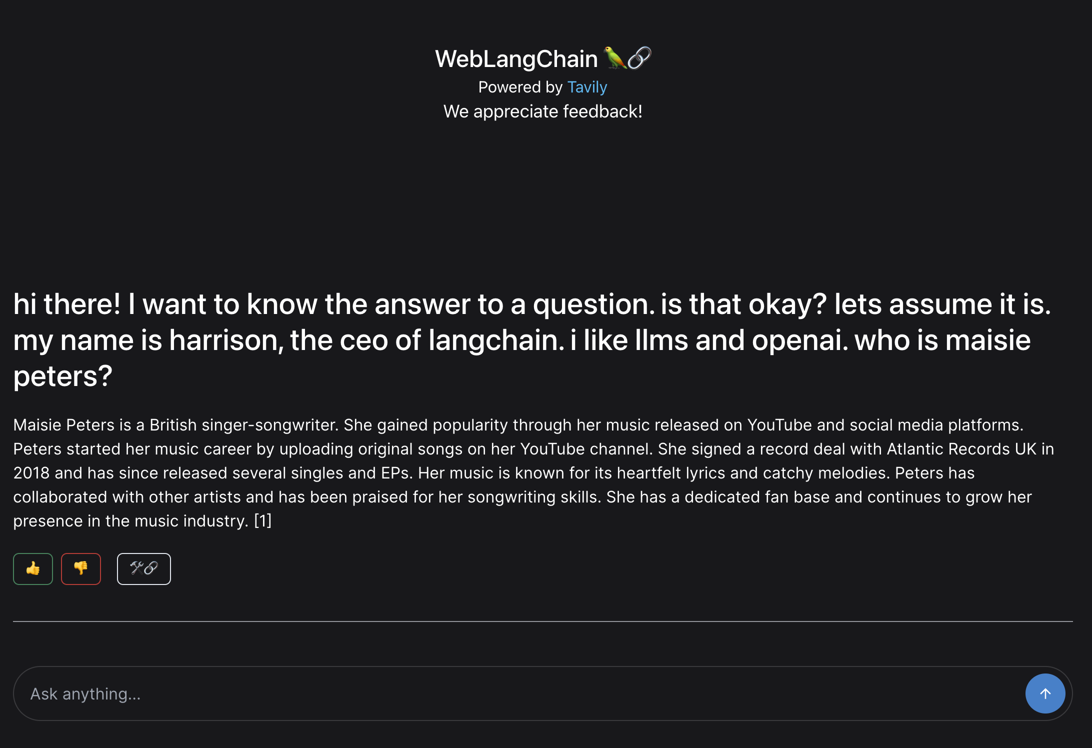 hi there! I want to know the answer to a question. is that okay? lets assume it is. my name is harrison, the ceo of langchain. i like llms and openai. who is maisie peters?