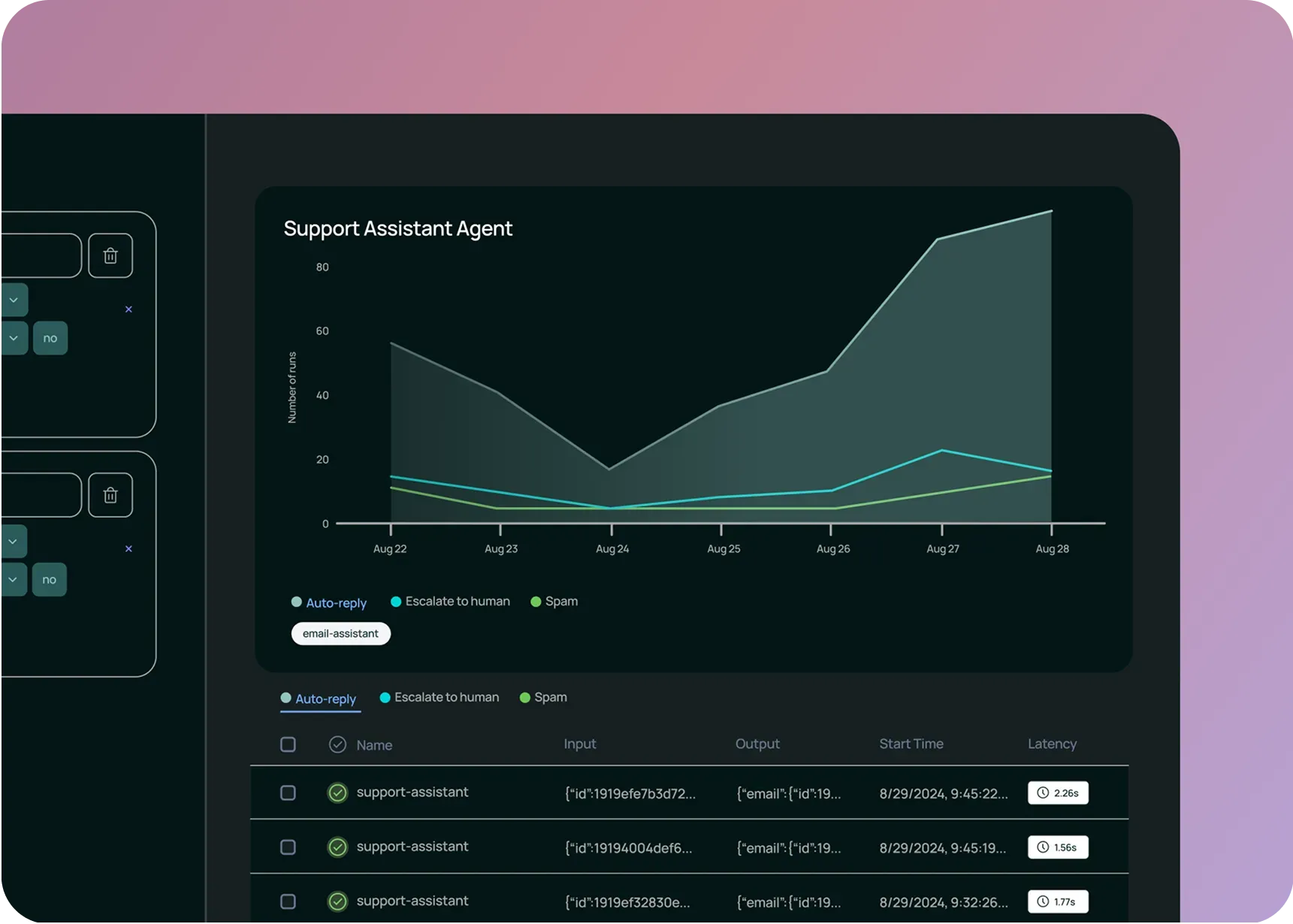 Building effective production observability for agents requires a specific set of capabilities, most of which general-purpose monitoring tools weren't designed to provide. Based on patterns we observed across dozens of production deployments, we built the following into LangSmith.