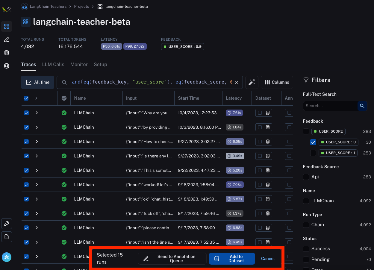 Data Annotation Queue is aimed at making it easy for teams to explore data, annotate example, and create datasets. This type of data exploration and dataset curation is invaluable when looking to bring an LLM application from prototype to production.