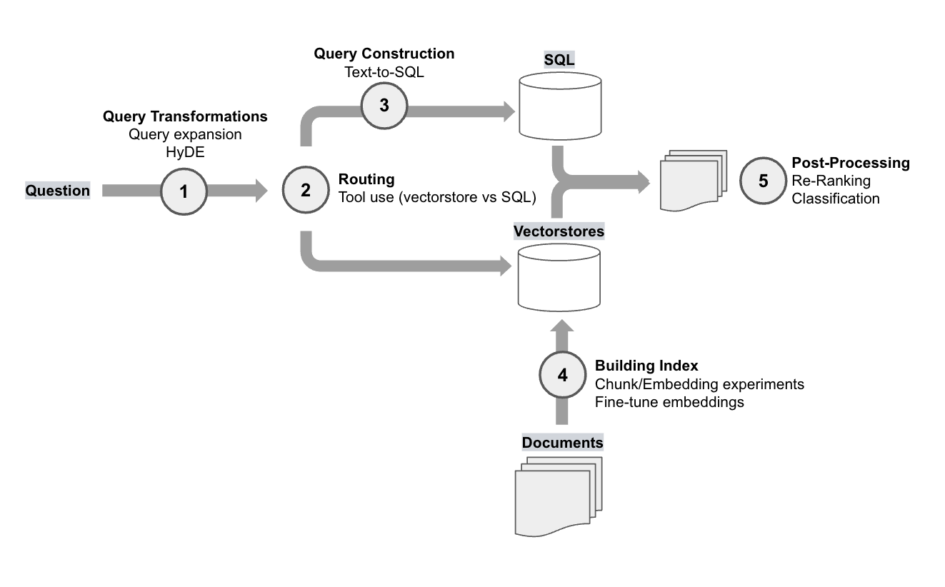 At their demo day, Open AI reported a series of RAG experiments for a customer that they worked with. While evaluation metics will depend on your specific application, it’s interesting to see what worked and what didn't for them. Below, we expand on each method mention and show how you can implement each one for yourself. The ability to understand and these methods on your application is critical: from talking to many partners and users, there is no "one-size-fits-all" solution because different problems require different retrieval techniques.