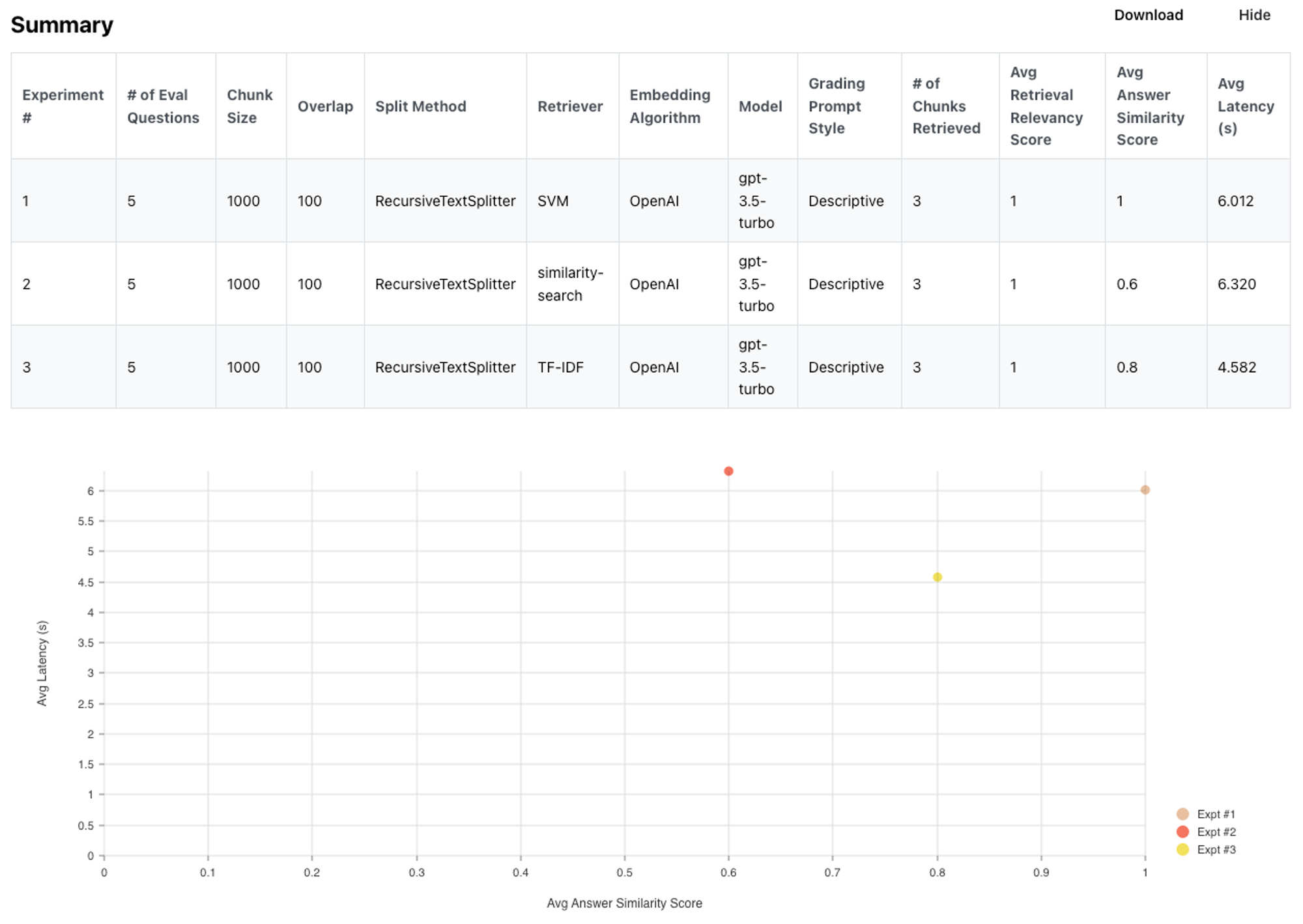The LangChain retriever abstraction includes several approaches for document retrieval. k-Nearest Neighbor look-up on embeddings from vectorDBs (e.g., FAISS, Chroma, etc) is a popular approach, but there are alternatives. For example, Karpathy recently discussed using SVMs as a retriever and statistical approaches like TF-IDF are options to consider. Auto-evaluator makes it easy to add and / or test various retrievers. We built a test set composed of 15 papers from Kipply’s excellent transformer taxonomy. Here is the test set, which of course could be improved: