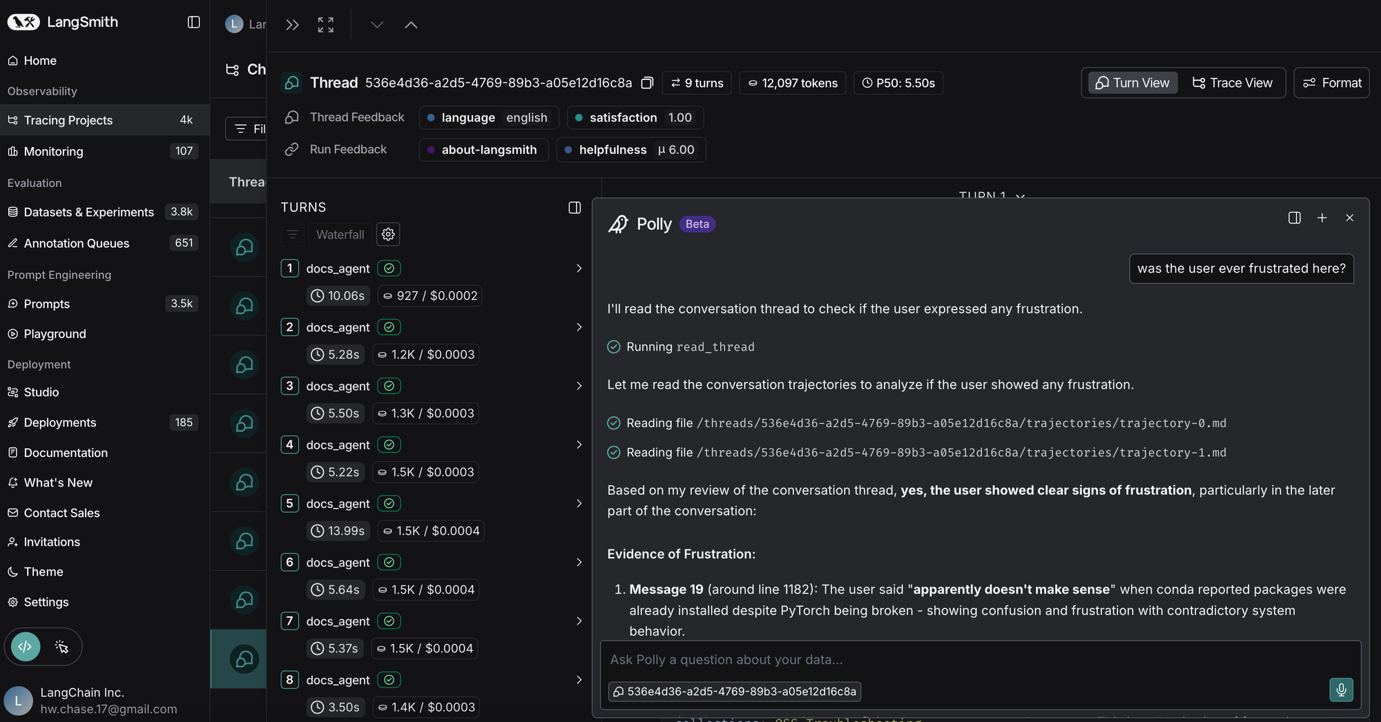 Polly is a new in-app feature that allows you to chat with an agent to analyze your thread and trace data. See our video overview here.