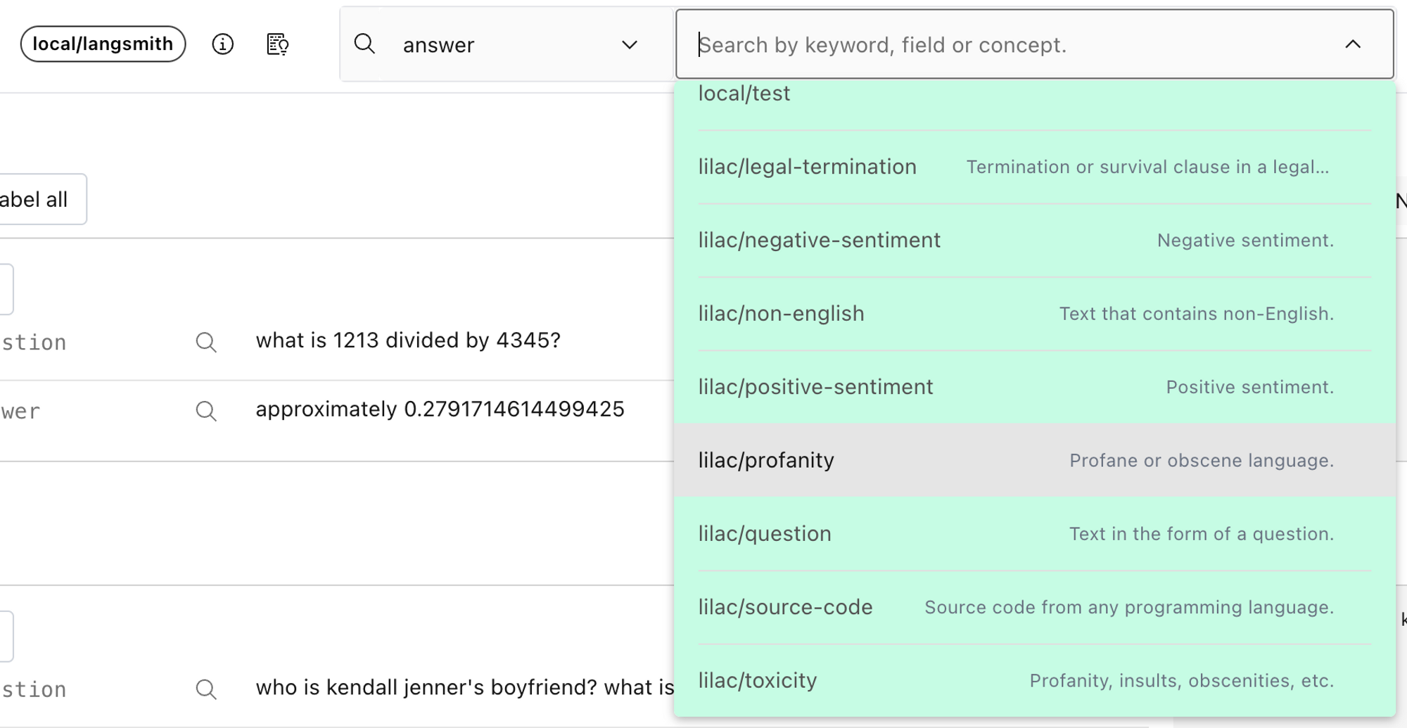 To understand and improve any language model application, it’s important to be able to quickly explore and organize the data the model is seeing. To achieve this, LangSmith and Lilac provide complementary capabilities: