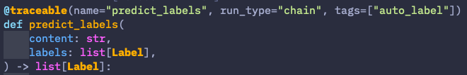 To try out LangSmith, we just had to add a @traceable decorator to a few of our LLM-related functions. It only took us minutes to instrument, and immediately upon pushing these changes to production we saw traces flooding into the LangSmith UI.