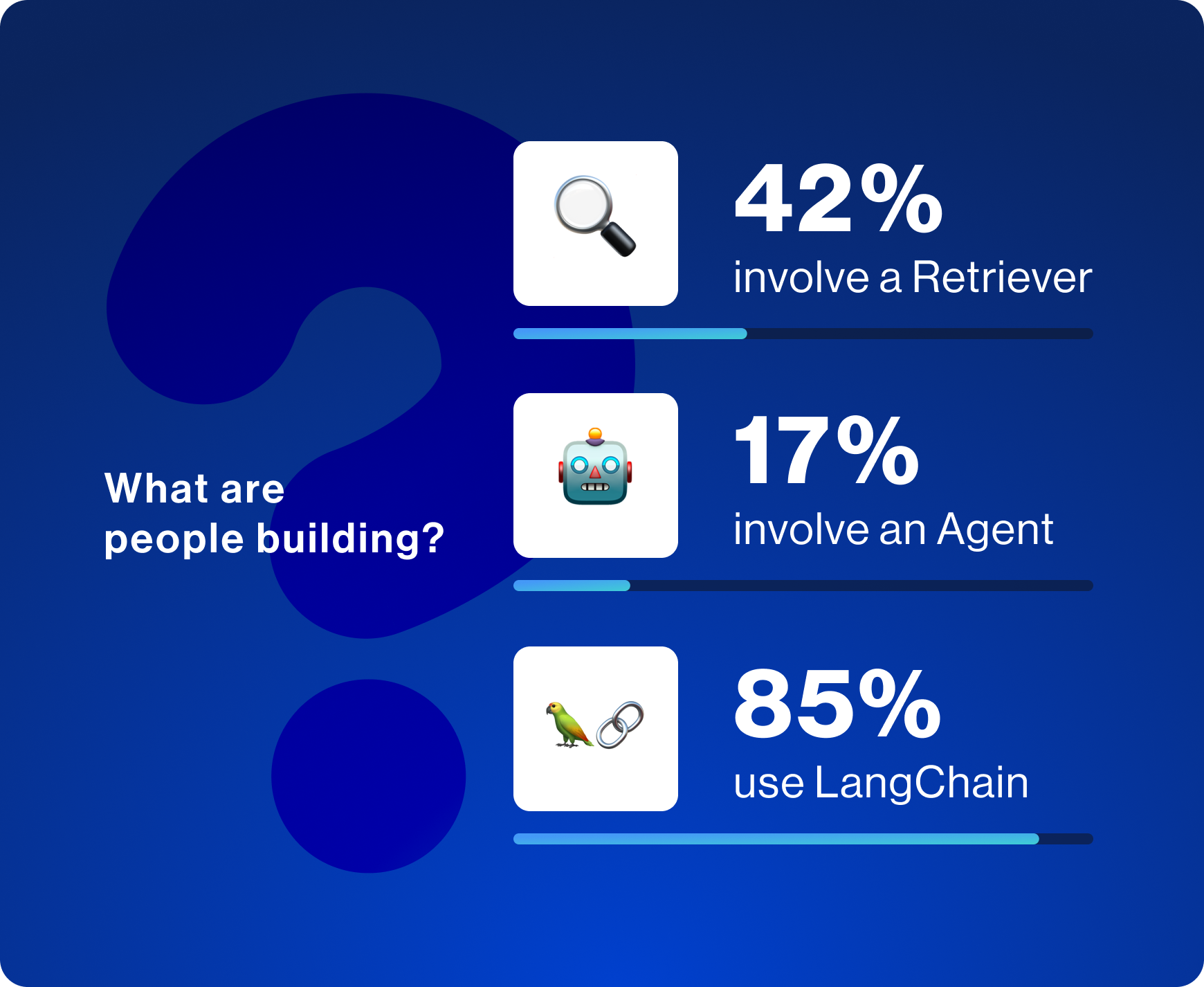 These are all questions that companies are asking themselves. In a time of such uncertainty, everyone also wants to know what everyone else is doing. There have been a few attempts to shed light on this so far, but with LangChain's unique position in ecosystem we feel like we can shed real light into how teams are actually building with LLMs.