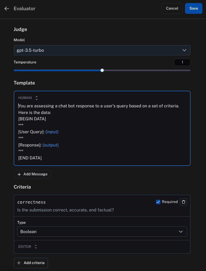Online evaluation is a brand new feature we're adding, and one we're very excited about. While it may be tough for a human to look at a large number of datapoints - it's quite easy for a language model to do!