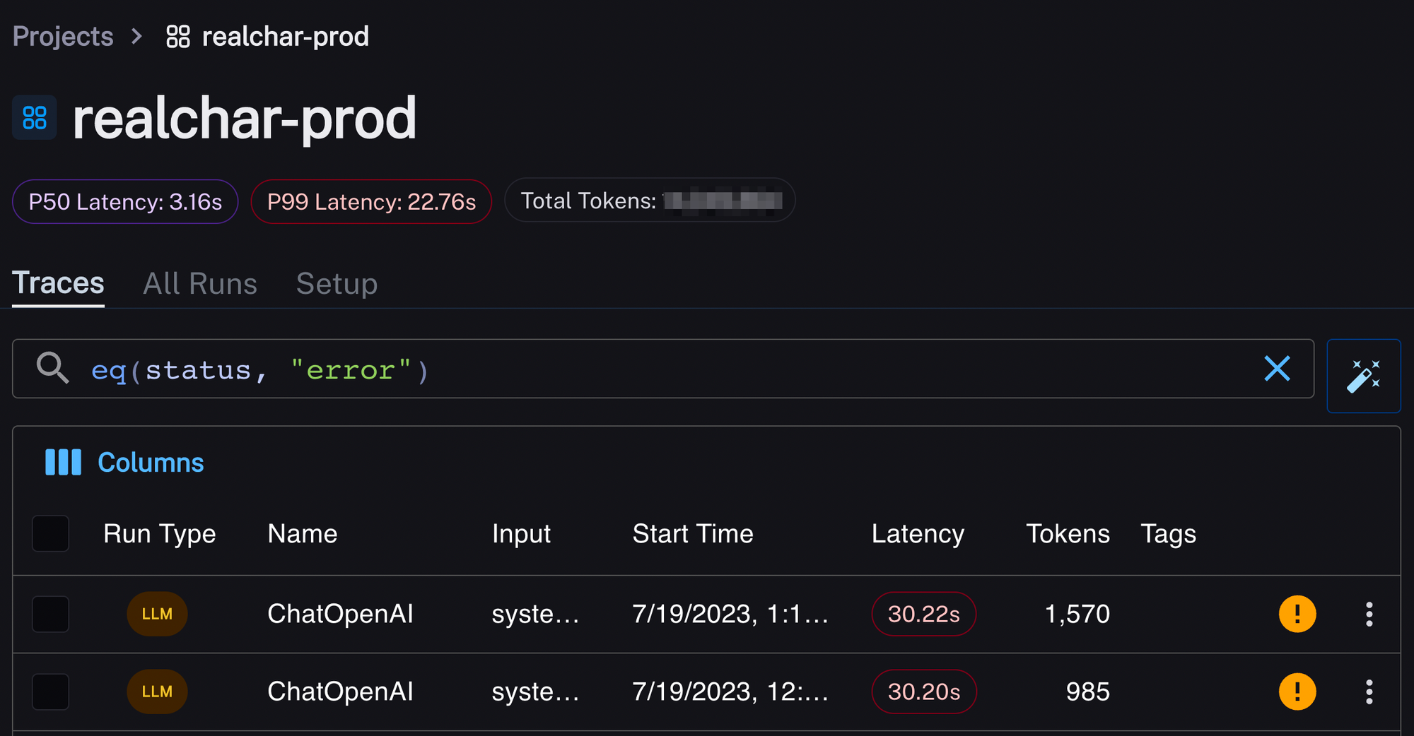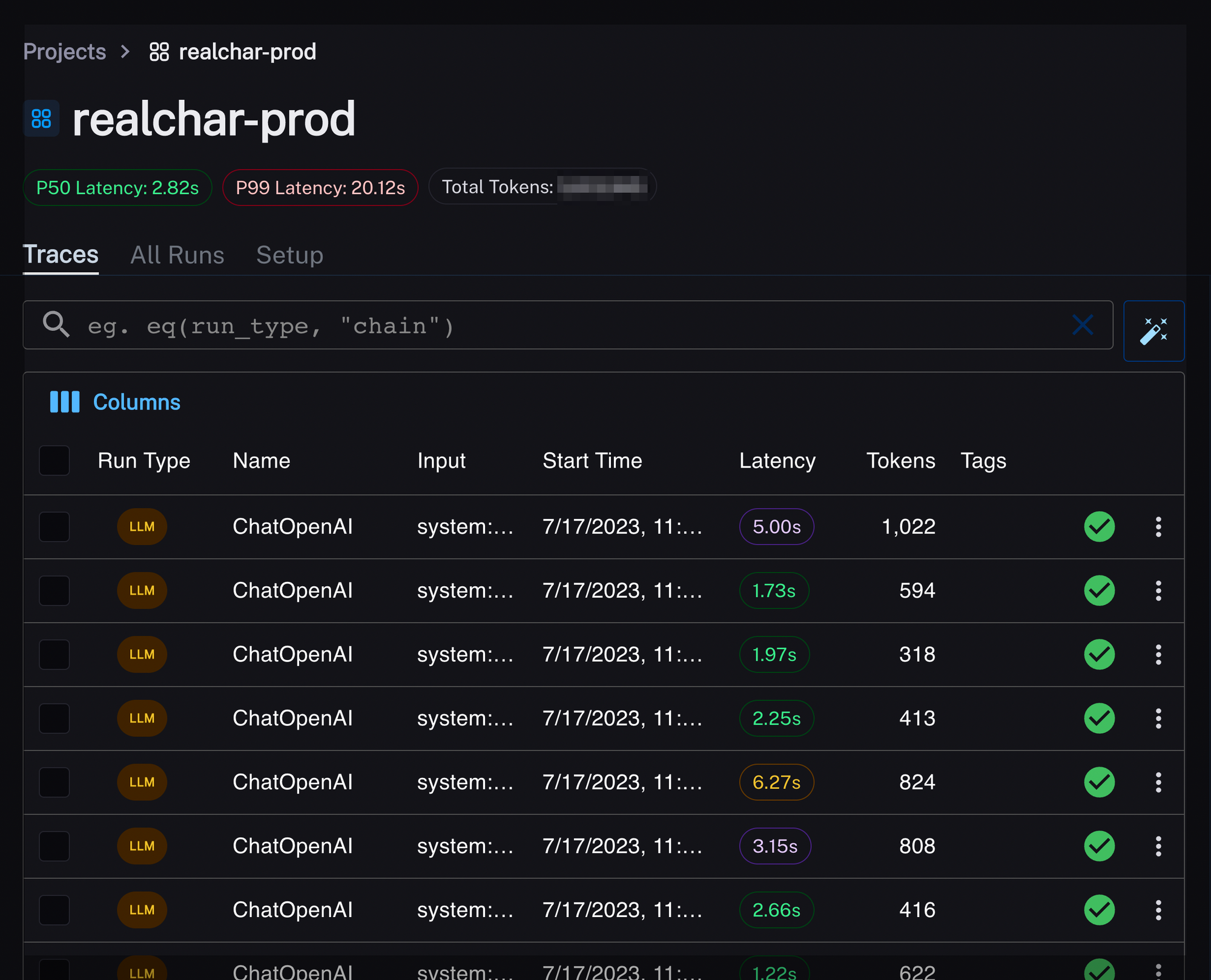 RealChar received a ton of attention and usage from the community after releasing it just a week ago, and our site has undergo significant traffic. With conversations piling up and logs get cluttered very quickly, we found LangSmith to be a perfect tool for us to monitor and observe the traffic.