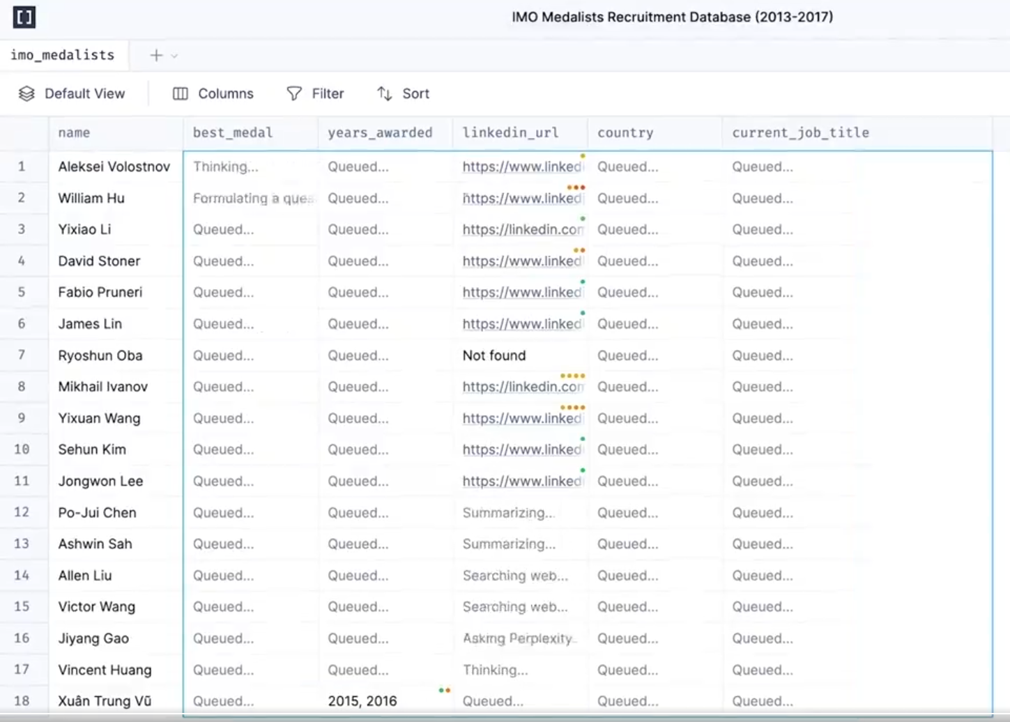There are other benefits of this UX as well. The spreadsheet format is a very common UX familiar to most users, so it fits in well with existing workflows. This type of UX is perfect for data enrichment, a common LLM use case where each column can represent a different attribute to enrich.
